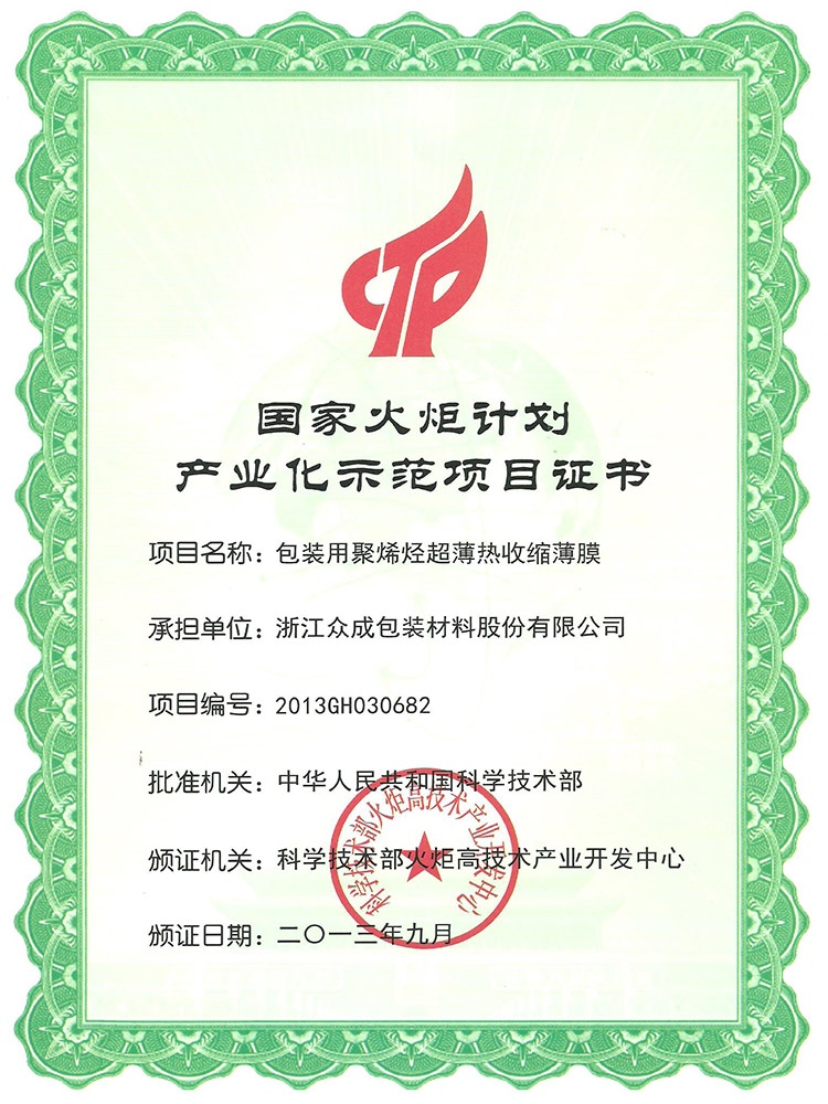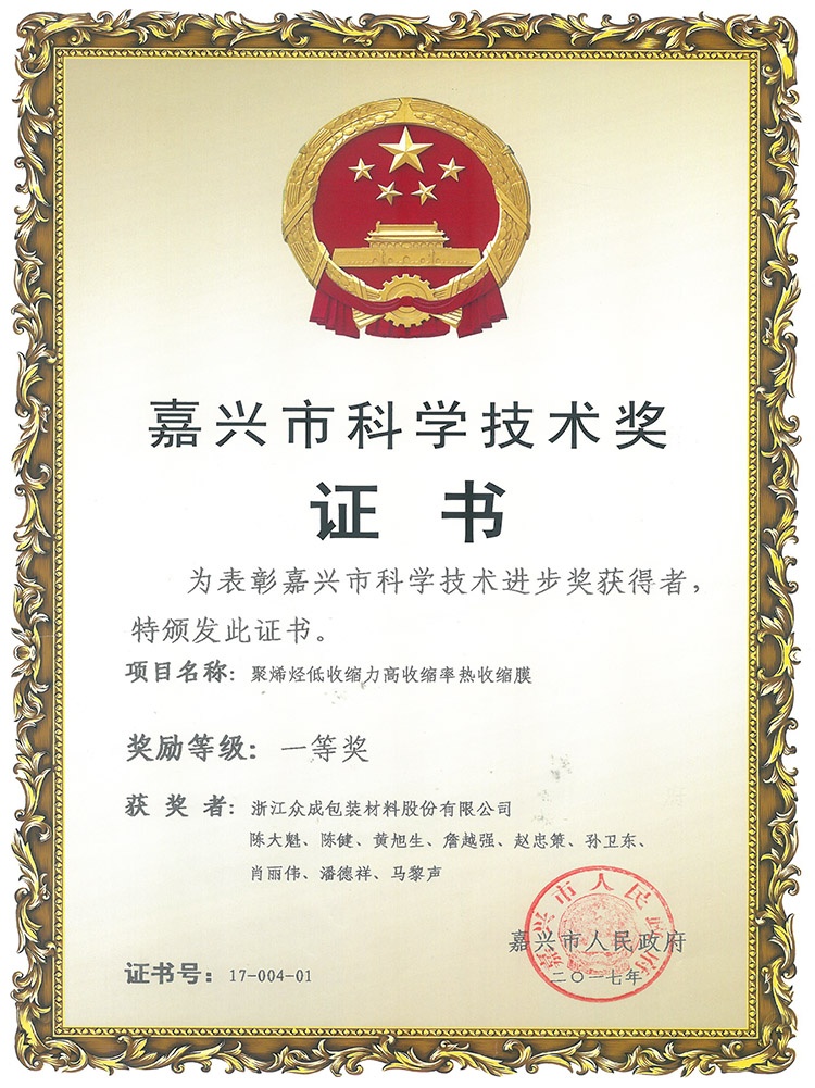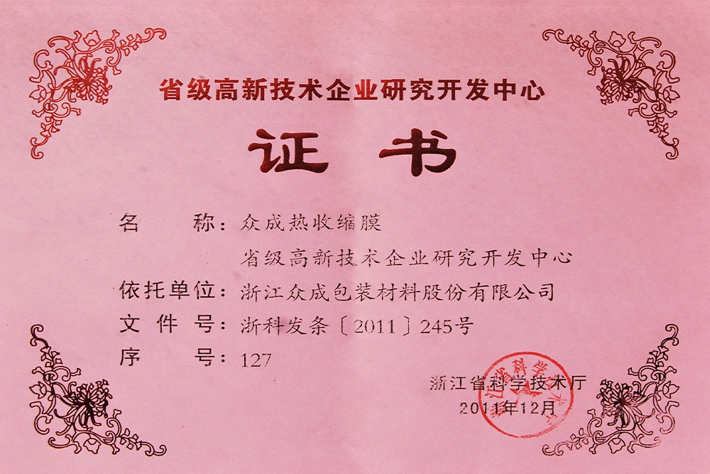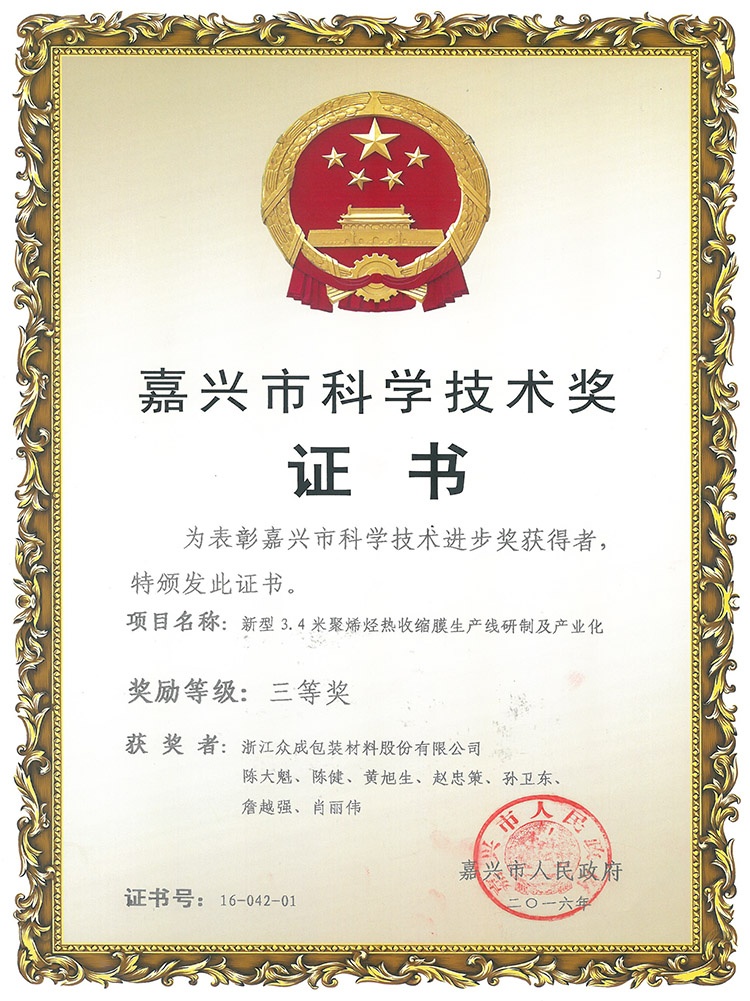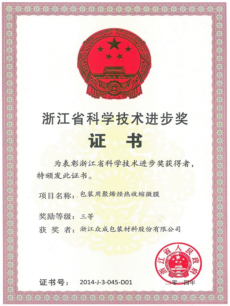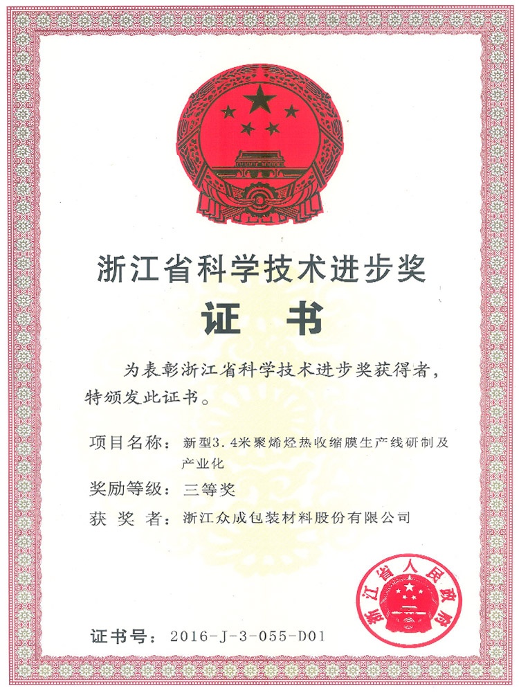 大公司积极践行“赢在更优”的的企业理念抖擞,维持重要设备自做,一直在新类类产品、新生产工艺上确认去创新,已加权平均得到知识储备房屋产权 48 项,但其中发明家专利局 21 项。依次制作了POF平凡热伸缩膜和POF热塑热伸缩膜,并在此条件上进这一步技木创新了聚烯烃高功能(地温)热伸缩透明膜、聚烯烃高伸缩(热塑)透明膜、纸盒封装定制超底伸缩力热伸缩膜、纸盒封装定制聚烯烃超轻薄热伸缩透明膜等房产化新类类产品,几次担负火把年度计划工程项目,得到江西省省完美技木前进奖金奖4次、嘉善市完美技木奖一、金奖各1次,嘉善县完美技木前进奖一级奖2次。